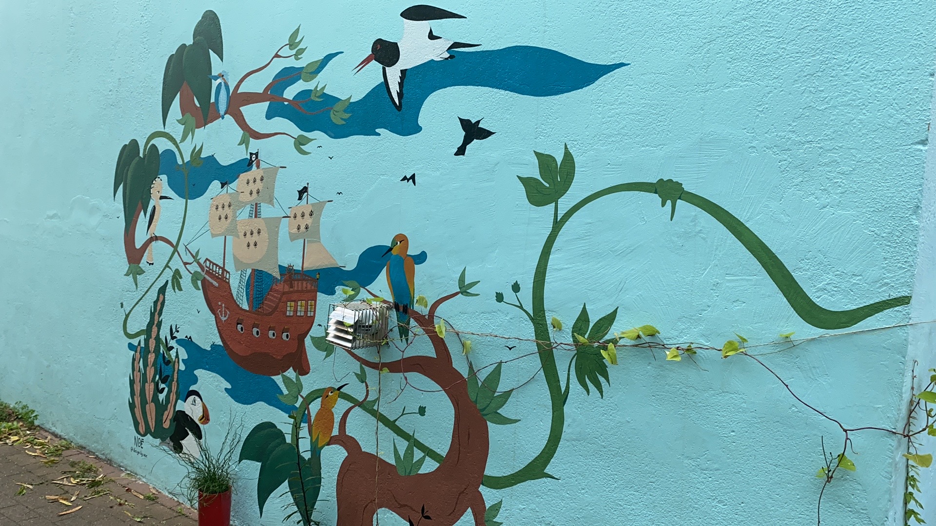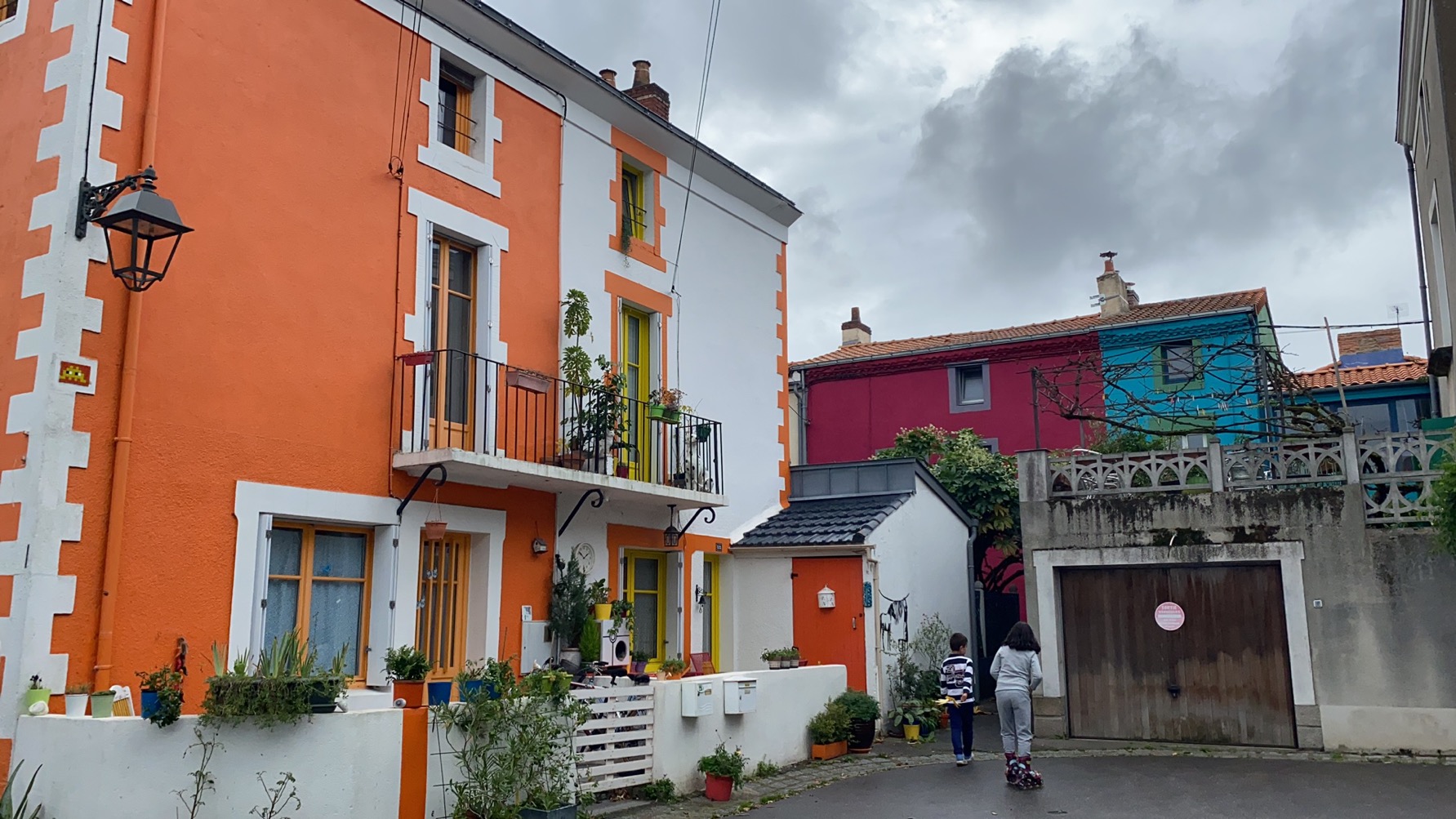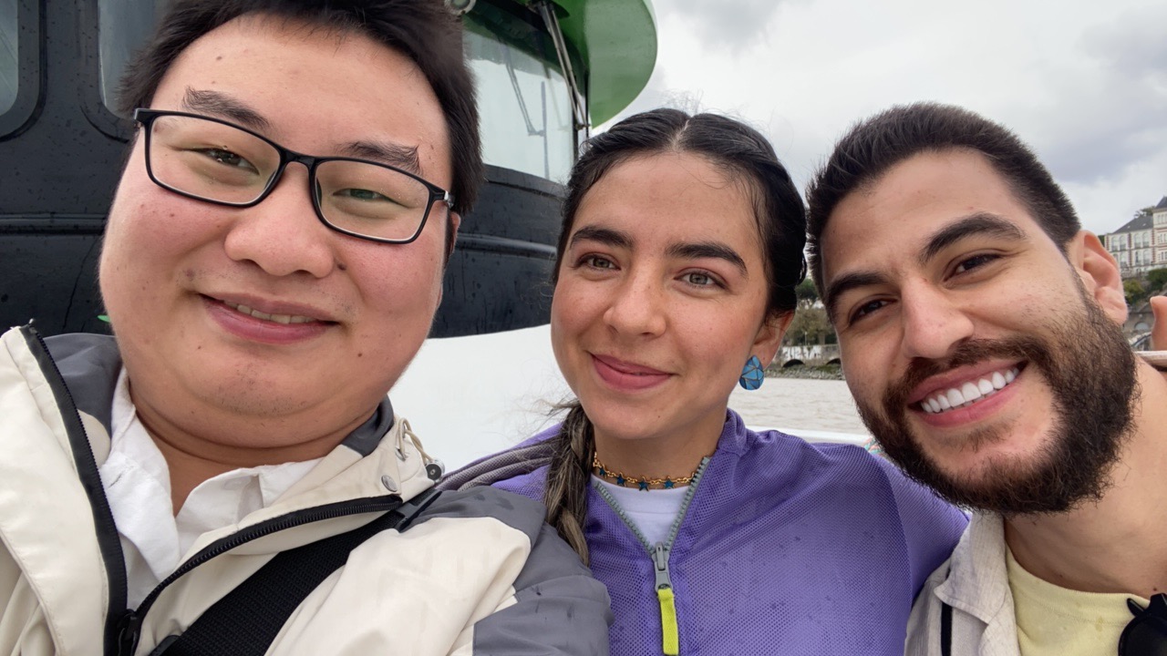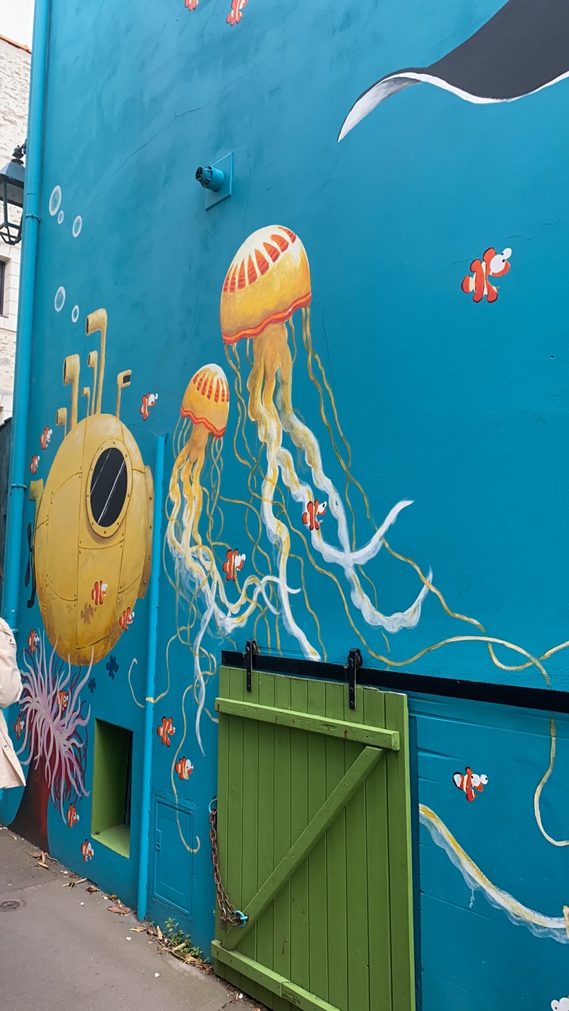 然后我们还一起乘船去南特市中心的小岛上逛了一下。不过他们是老师只来交流一个学期,然后就走了。不过在他们走了之后,还有一个趣事,当我一年后从中国返回南特的时候,然后乘车的时候有一个人跑了过来,说他认识我。那个人说他是,其中一个哥伦比亚女生Sandra(就是出现在下面图片中穿紫色衣服的女生)的男朋友,他到南特后发一张照片给Sandra,然后正好就把我拍到了。过来跟我问了个好,突然感觉世界上有好多巧合,这个概率简直太低了。以下照片是我们一起出游拍的照片,还有南特岛上的一些多彩的房子。